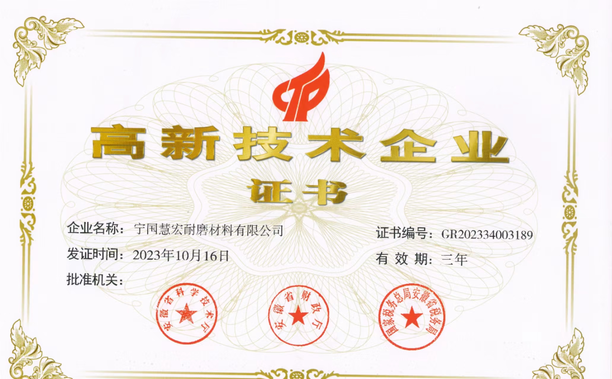 可靠的設(shè)備,才能長久穩(wěn)定運行全面推行ISO9001;2000版質(zhì)量管理體系標準,秉承“科學管理、精心制造、優(yōu)質(zhì)服務(wù)、追求卓越”的質(zhì)量方針,不斷打造高端耐磨材料產(chǎn)品。